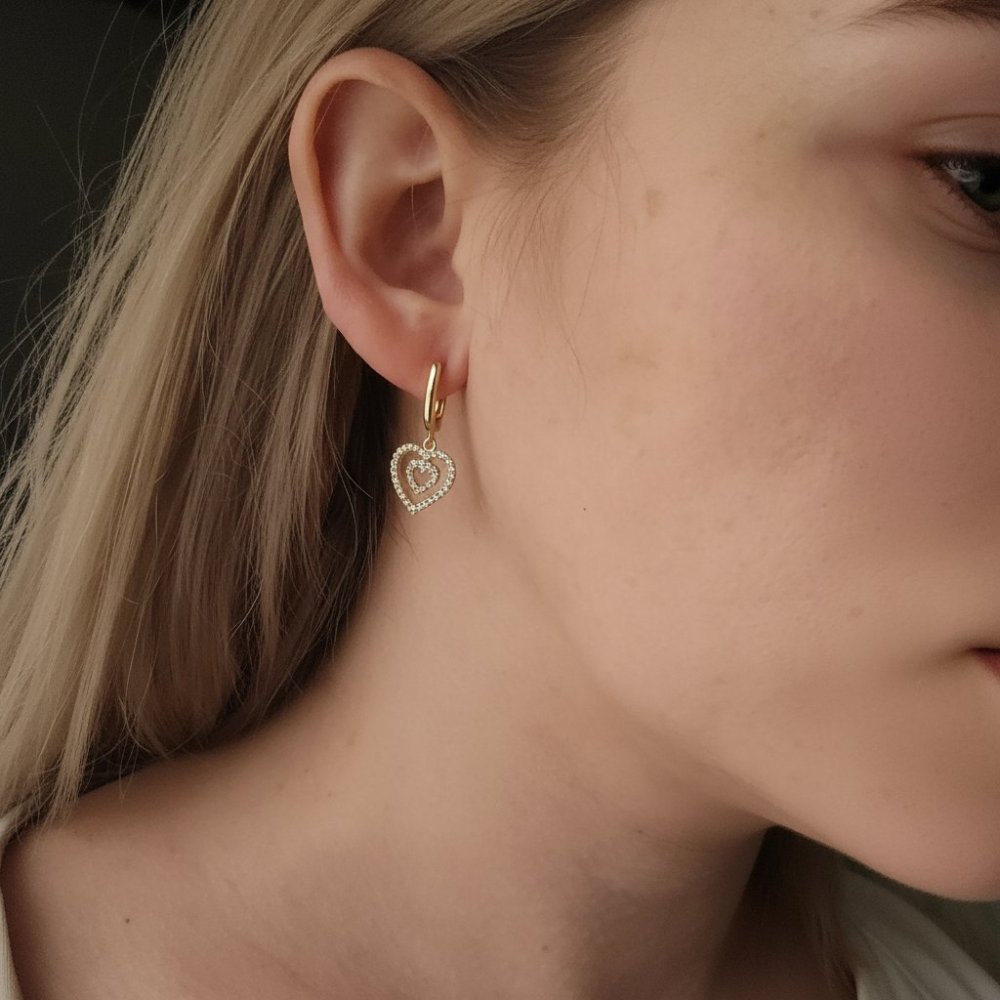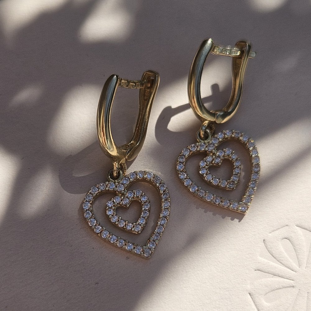 Ez a 14 karátos sárga aranyból megmunkált, 2,5 x 1,3 cm-es függő fülbevaló az egymásba simuló szívek szimbolikájával, a precíz sínfoglalatban tündöklő cirkónia kövek káprázatos fényével és a tükörfényesre polírozott felületek meleg ragyogásával teszi felejthetetlenné a megjelenést.