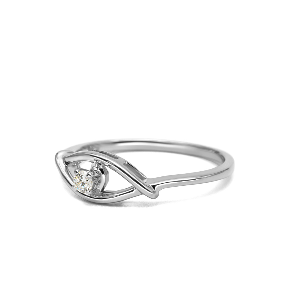 Az Amarilla gyűrű egy letisztult növényi motívum kortárs újraértelmezése. A 14 karátos fehérarany sín közepén egy ovális, stilizált levélkeret öleli körül a briliáns csiszolású gyémántot, amely a szerkezet optikai középpontjában ragyog. Az aszimmetrikus, szabadkézi levelet idéző vonal finoman ível, kifinomult kontúrt alkot, kiemelve a drágakő tisztaságát és fényét.