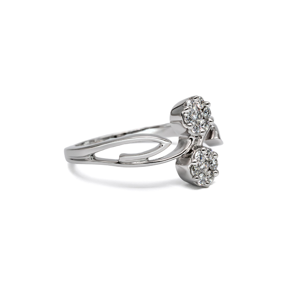 A Camelia gyűrű a természet báját idézi meg: két körben elhelyezkedő, ragyogóan csillogó gyémánt virágfej koronázza a fényes, 14 karátos fehérarany szárat. Különlegessége abban rejlik, hogy a két gyémánt virágfüzért egy elegáns, fonott, leveleket formázó aranyszár fogja közre, játékos és nőies karaktert adva a gyűrűnek. Harmóniát teremt a modern geometria és a klasszikus floral motívumok között, így mindennapra is ideális, de egyedisége miatt különleges alkalmakra is tökéletes választás. A Camelia megtestesíti a kifinomult, ugyanakkor kreatív ékszertervezés Petrals-féle stílusát.