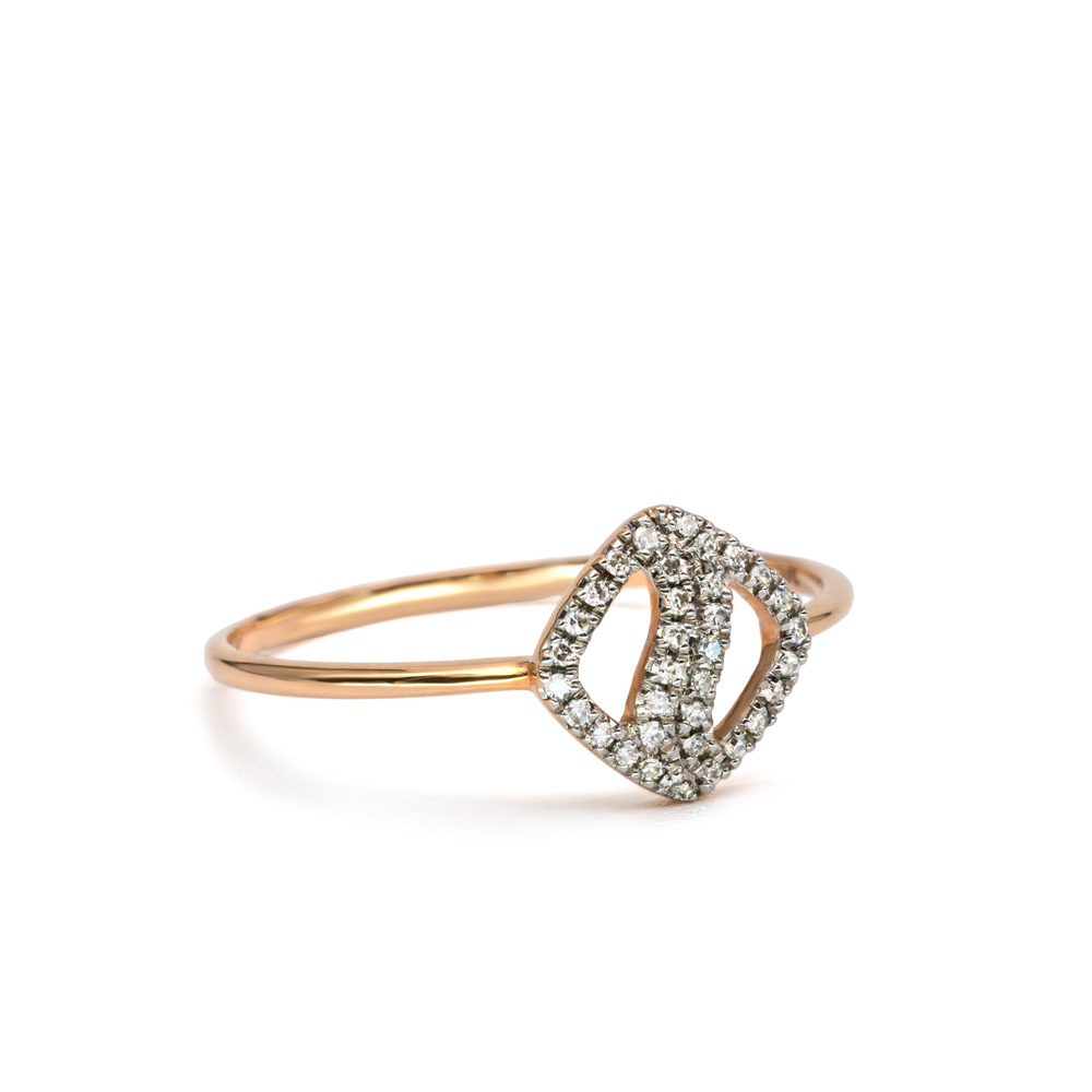 A Daphnia gyűrű elegáns, modern formatervezéssel kelti életre a kecses, hullámzó vonalvezetést. Középre helyezett, négyzetes, áttört motívumot finom, teljes felszínén pavé briliáns gyémántsor díszíti, melyek a geometrikus keretek mentén vibráló fényt szórnak. A nyitott, könnyű konstrukció természetes légies hatást eredményez. A Petrals Daphnia stílusa egyszerre korszerű és időtlen; tökéletes önálló kiegészítőként, de gyűrűhalmozásban is kitűnő.