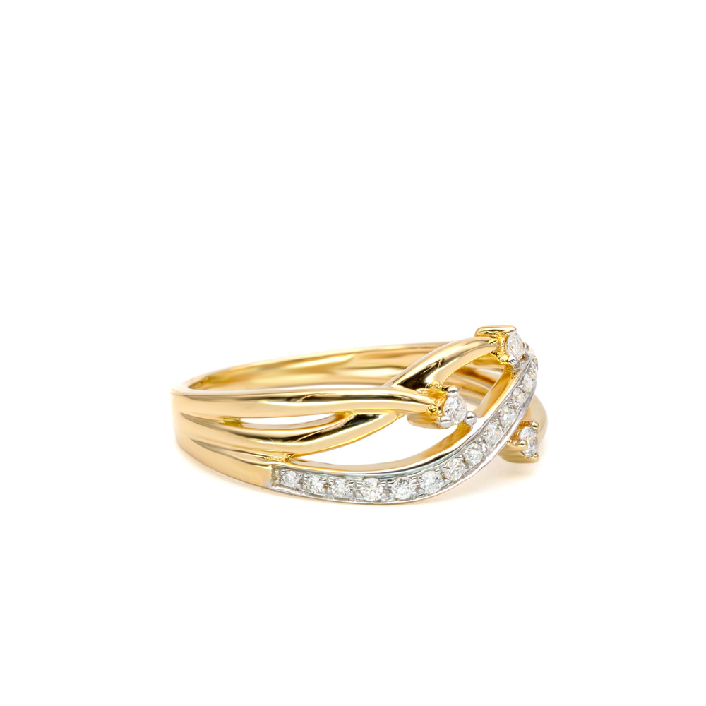 A felső részen egy folyamatos, enyhén ívelt pavé gyémántsor fut végig, amelyet sima aranyszálak kereteznek, a hullámok találkozási pontjain pedig apró, kerek briliáns kövek ülnek, mintha fénycseppek tapadtak volna egy aranyló „lilium aureum” szárára.