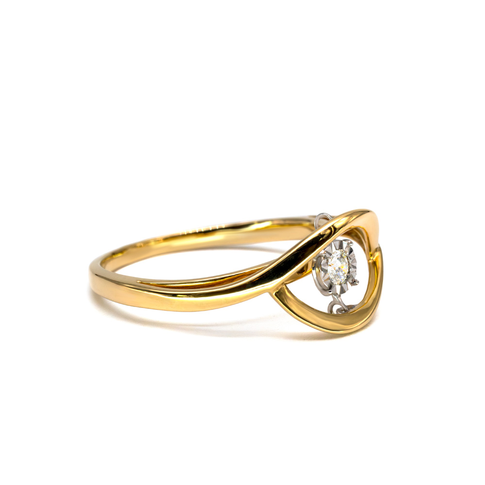 A Freesia gyűrű különlegessége, hogy középső, briliáns csiszolású gyémántja mozgékony, így minden kézmozdulatra finoman táncol a fényben. A sárga arany szár aszimmetrikusan, modern hullámmal ível át, és a közepén egy nyitott, levegős keret tartja lebegő pozícióban a követ – nincsenek hagyományos érintkezési pontok, csak lágy arany ölelés a ragyogás körül. Ez a Petrals ékszer játékos, innovatív, mégis elegáns választás; minden pillanatban új arcát mutatja, akár önállóan, akár más aranygyűrűk mellett viselve. Tökéletes azoknak, akik a mozgás energiáját és a természetességet ötvöznék ékszereikben.