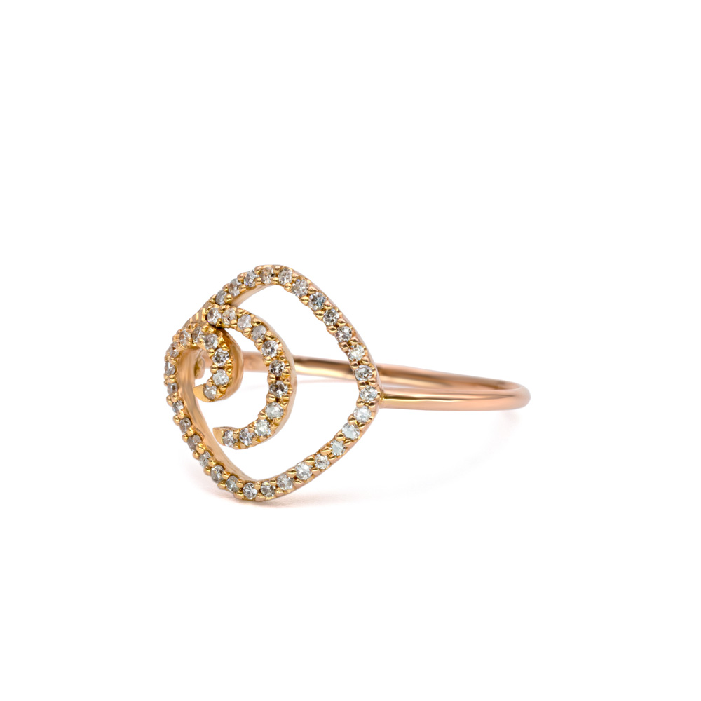 A motívum lapos, könnyed szerkezete és a vékony sín kényelmes, akadástól mentes viselést tesz lehetővé, így a gyűrű ideális választás mindennapi statement darabnak vagy ünnepi koktélgyűrűnek.